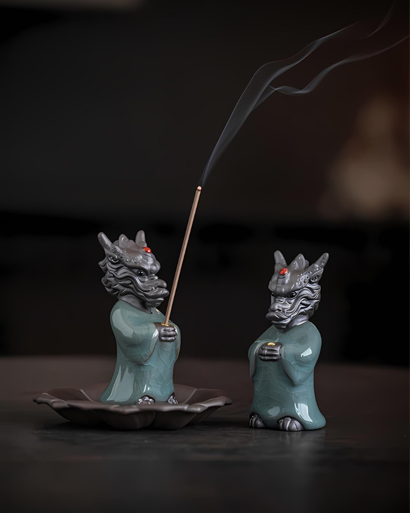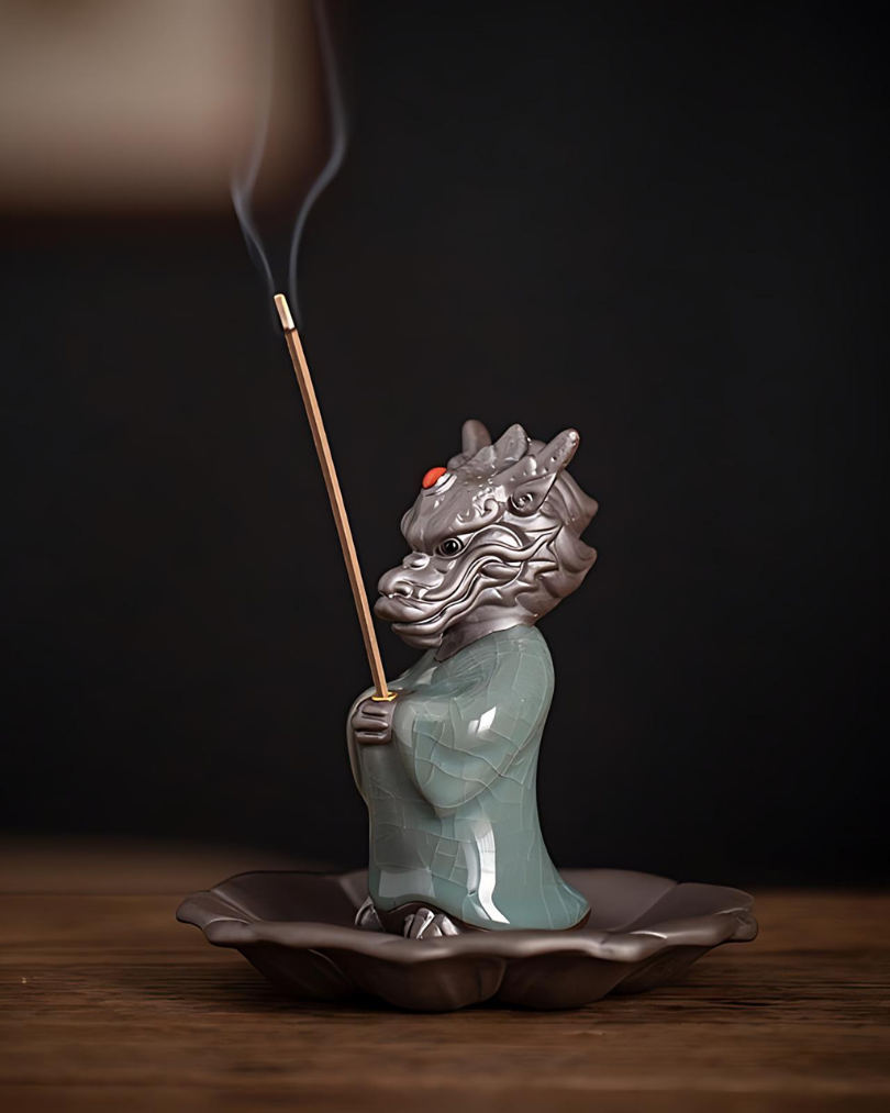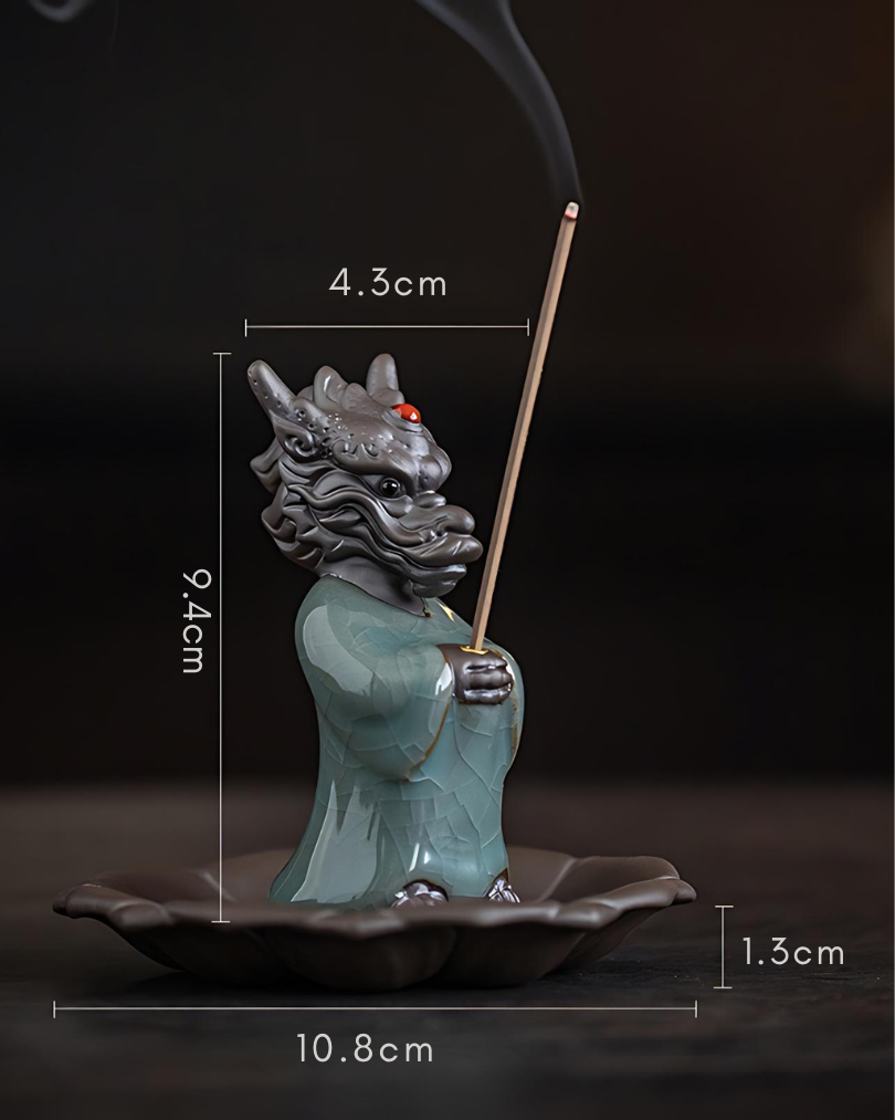 Cada detalle cuidadosamente esculpido refleja una dedicación sin igual, haciendo de este portainciensos una pieza única y atemporal. Ideal para crear un ambiente sereno y sofisticado, este dragón cerámico es más que un simple accesorio: es una experiencia.